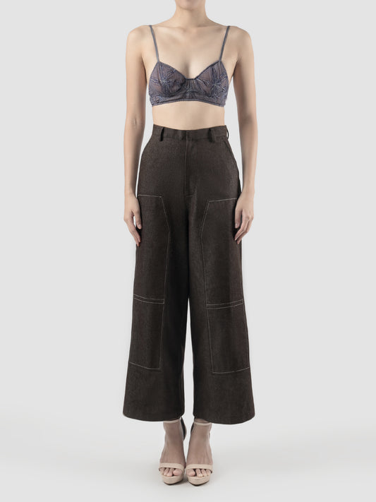 Maroon bralette with powder yellow embroidery