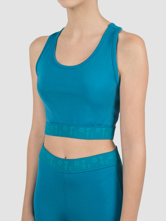 Blue Bonded Jersey Silk Sheen Racer Crop Top