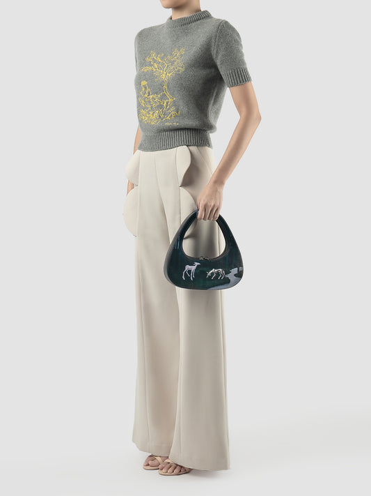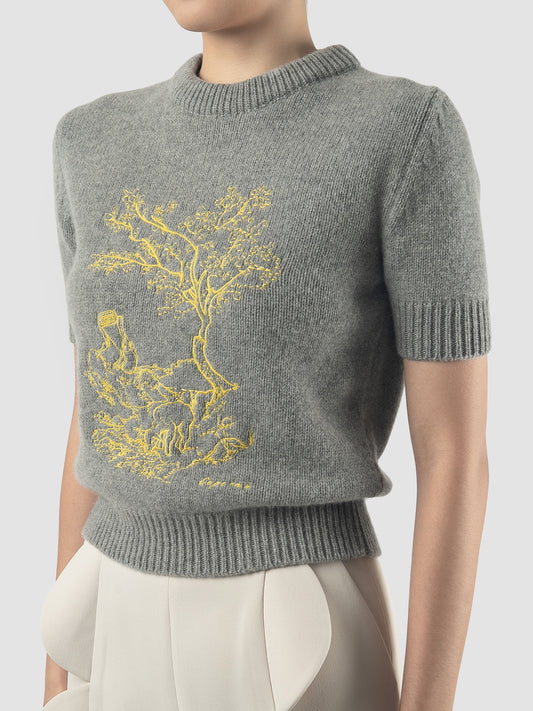 Sold outGrey embroidered cropped sweater