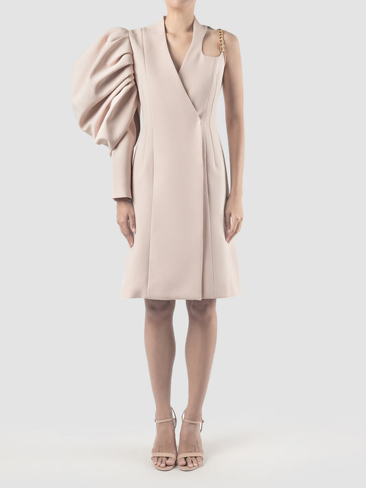Pink Terylene Blazer Dress with Asymmetrical Sleeves