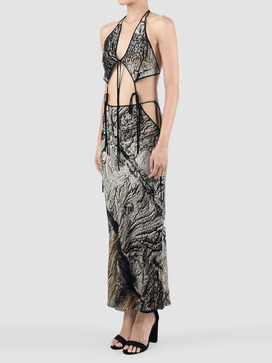 Bark Print Two-piece Sleeveless Midi Dress
