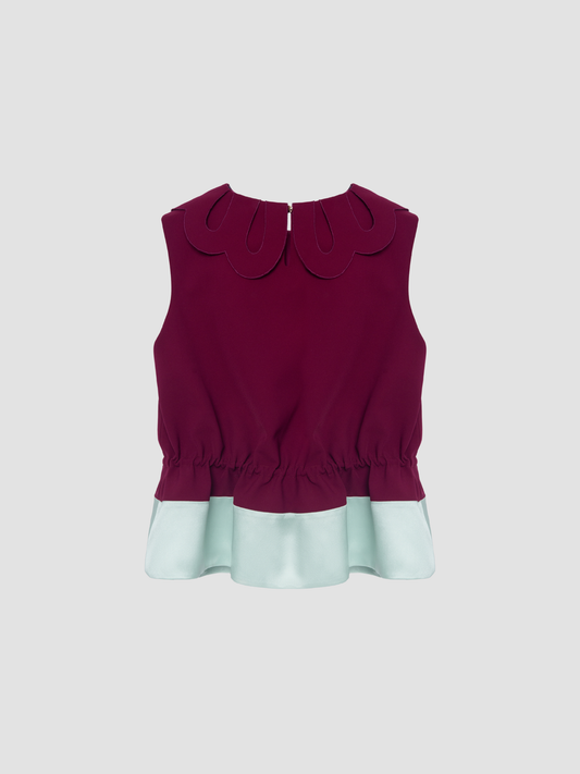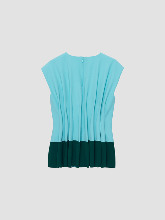Cadet Blue & Sacramento Two-Tone Pleated Top