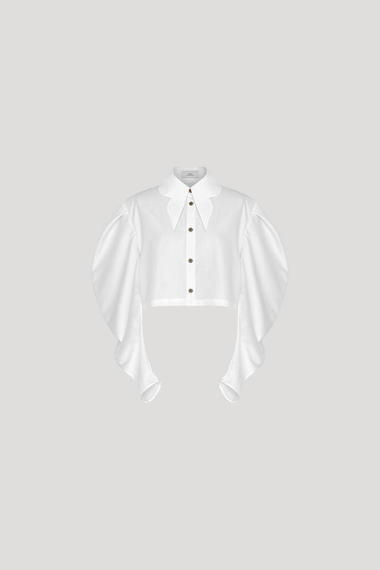 Teal Floral Gathered Sleeve Cloque Cropped Shirt