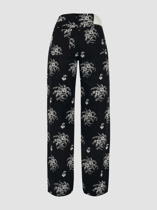 Low Waist Embroidered Denim Pants In Black