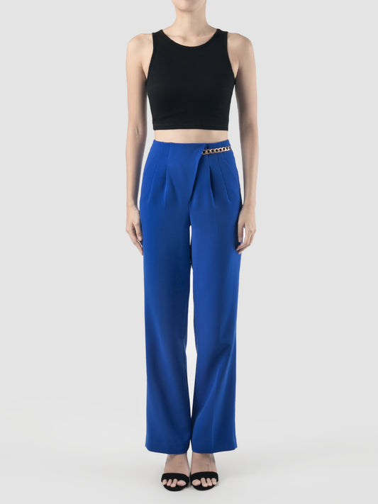 Cobalt Blue Chain-embellished Wide Leg Trousers