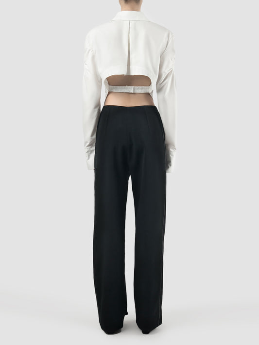 White tailored backless shirt with cutout sleeves