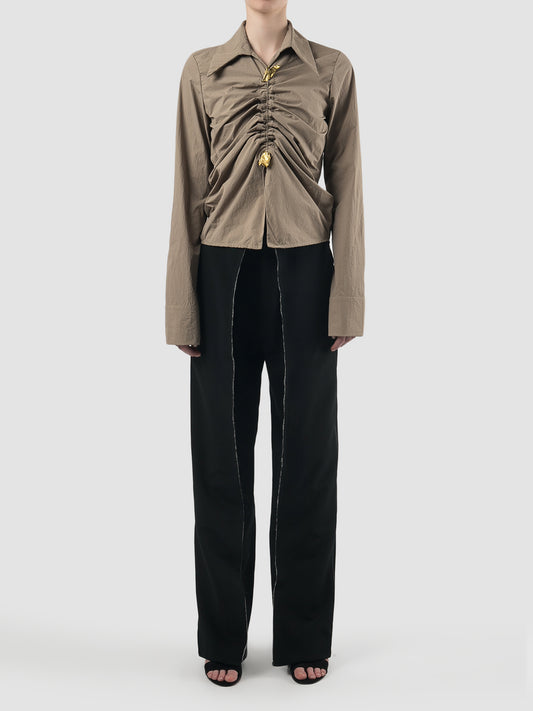 Pewter brown deconstructed gathered shirt with abstract rod