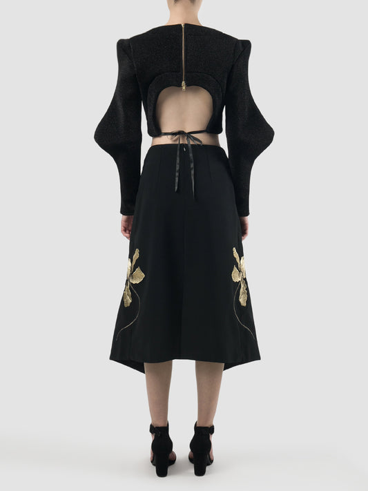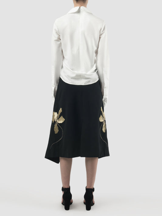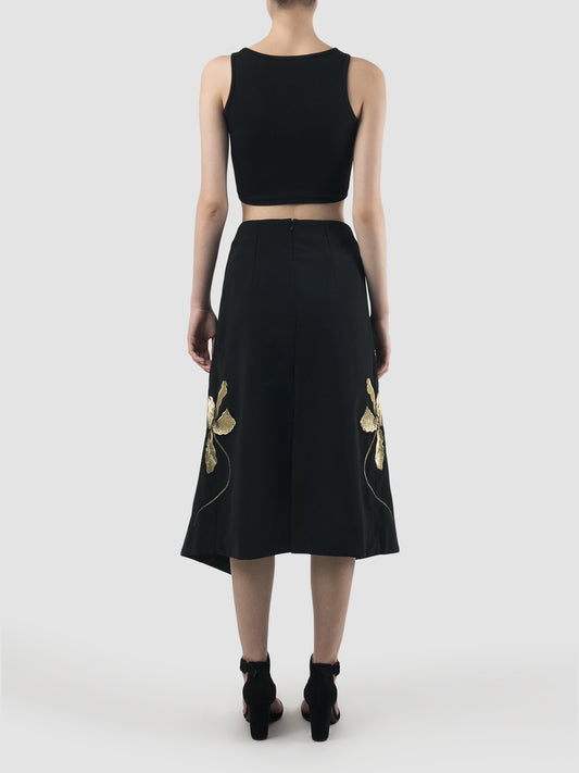 Black double-layered skirt with gold embroidery