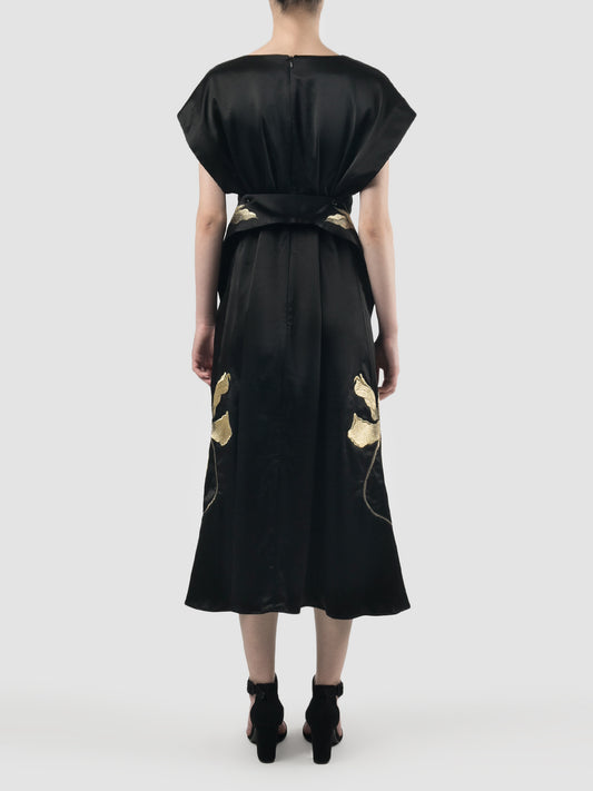 Black kimono dress with plunging V-neckline