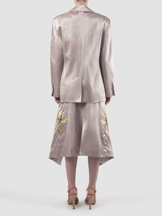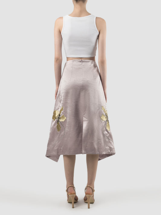 Lilac double-layered skirt with gold embroidery