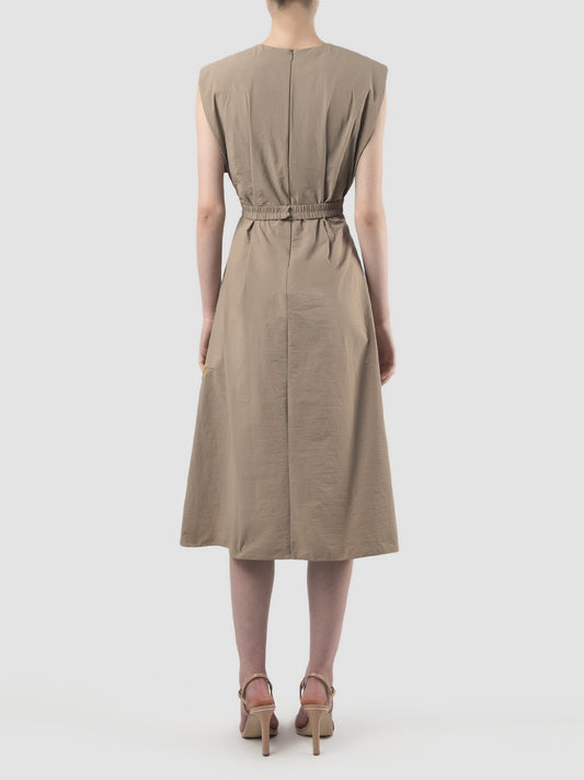 Pewter brown midi dress with gathered cutout details