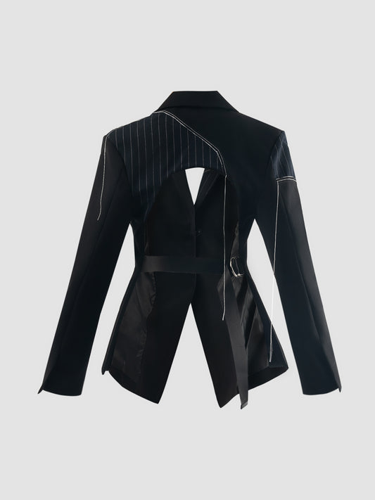 Black Balloon Hem Top w/ Cut Out Details Adjustable Straps