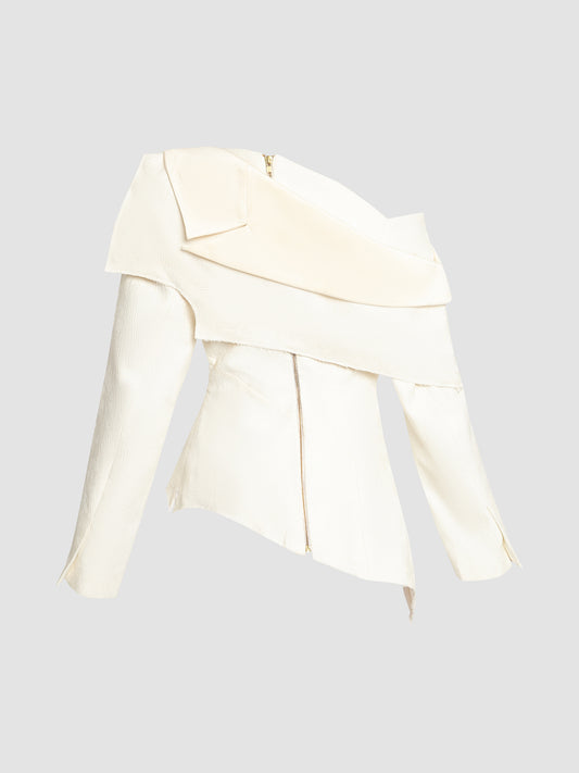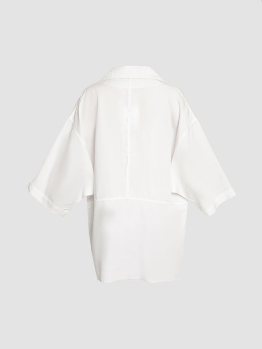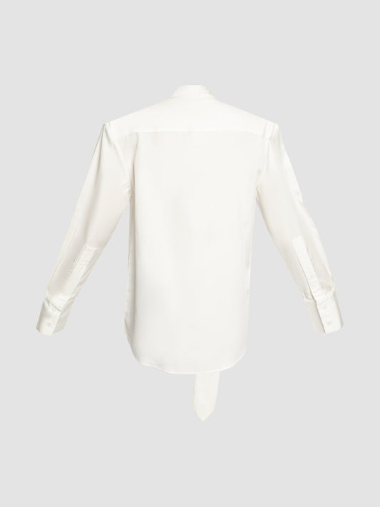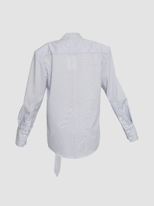 White Tailored Pinstripe Shirt with Attached Tie Collar