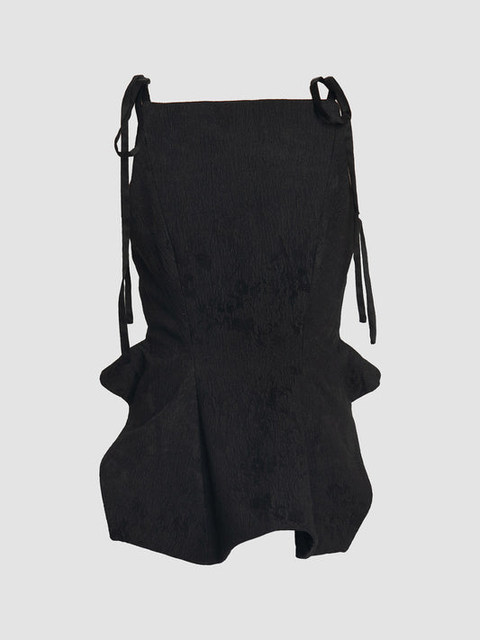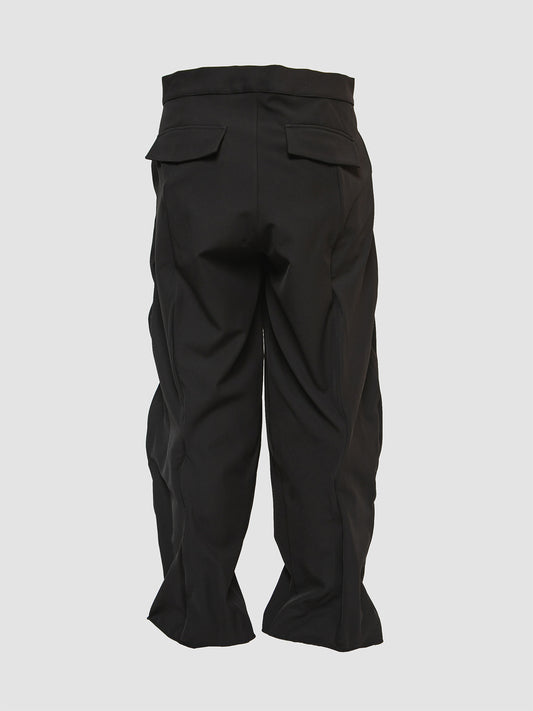 Black Tailored Pants with Distressed Waistband Side Handstitched