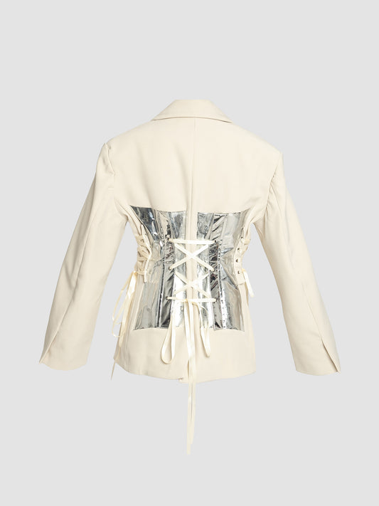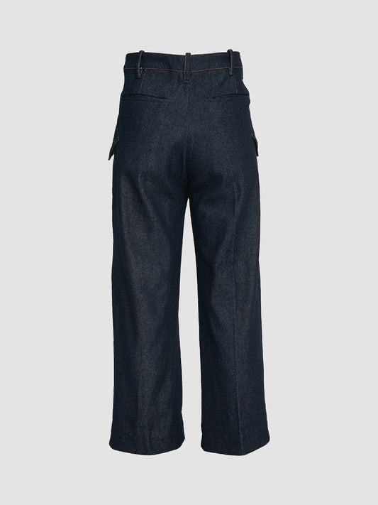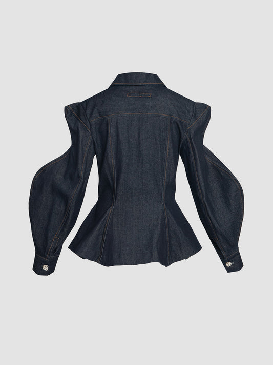 Navy Tailored Denim Jacket with Abstract Sleeves