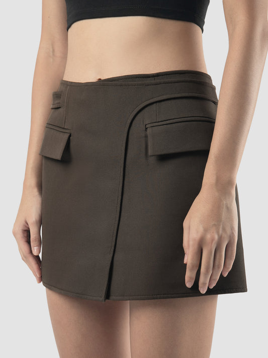 Cedar double-layered mini skirt with adjustable belt