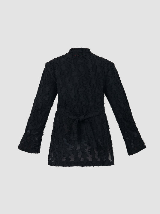 Black Knitted Mesh Deconstructed Top with Skribbl Red Pattern