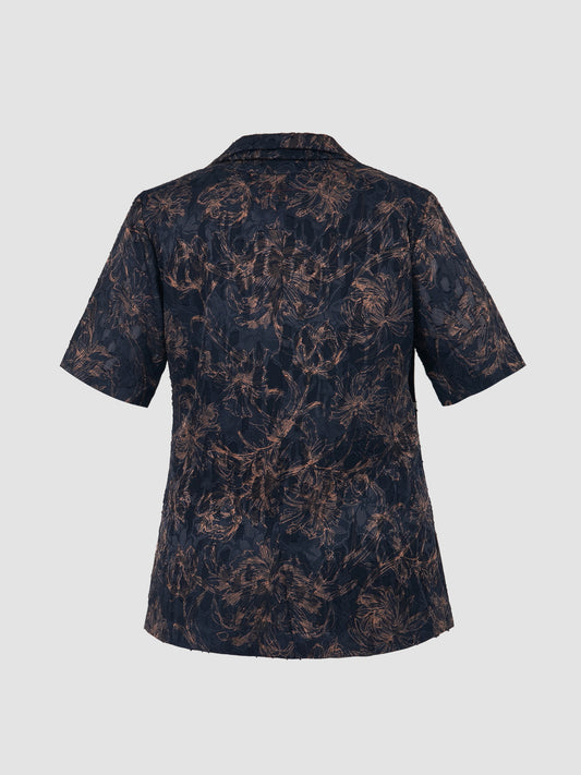 Black Knitted Mesh Polo with Skribbl Red Pattern