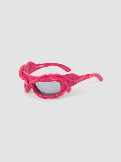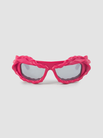 Ottolinger's latest eyepiece boasts a set of reflective lenses and a 3D twist formation design affixed to a vibrant frame and temples.