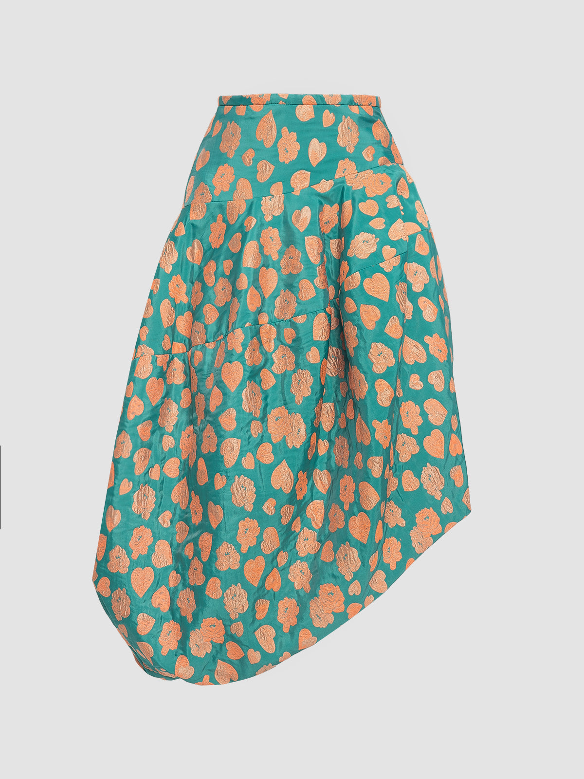 Asymmetrical Cocoon Skirt in Tangerine Heart