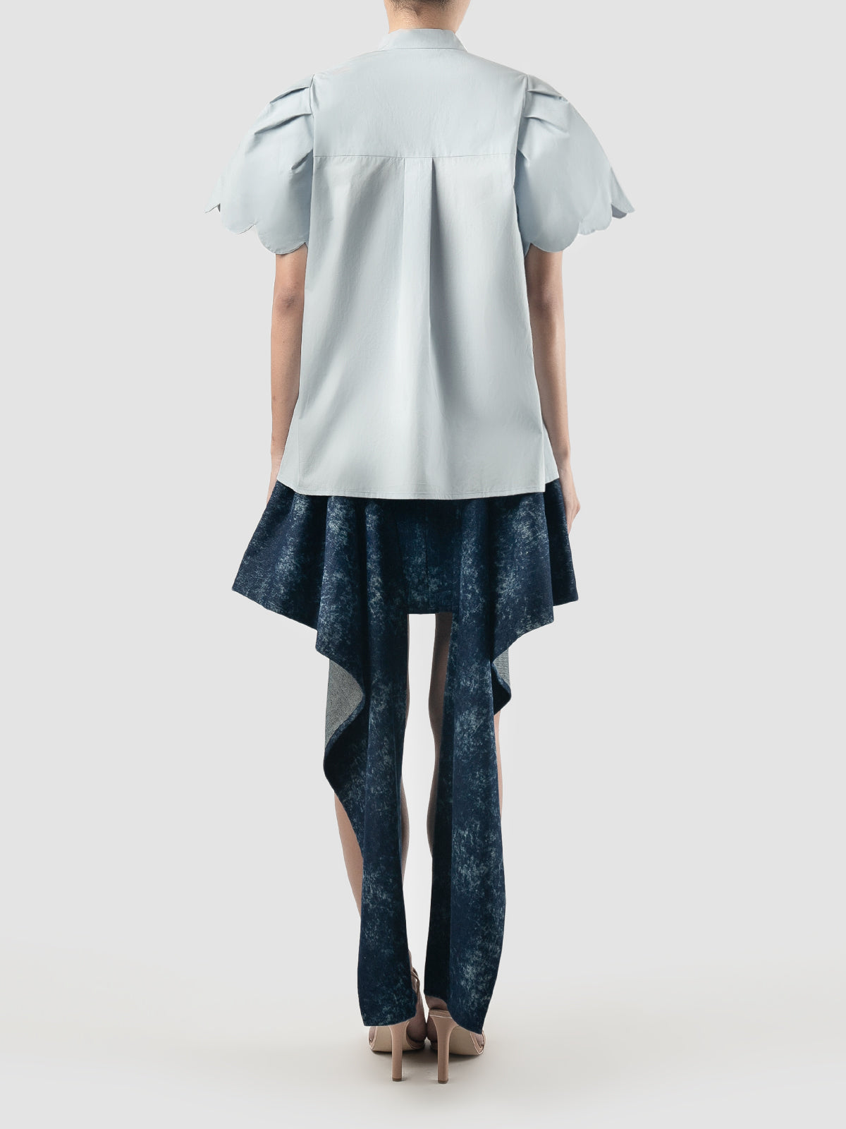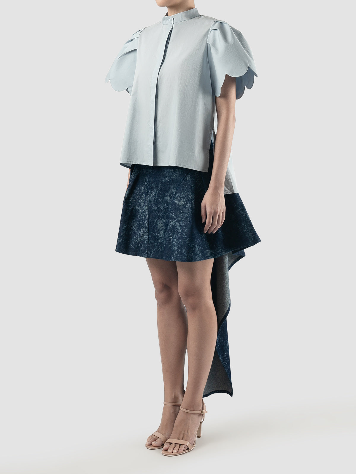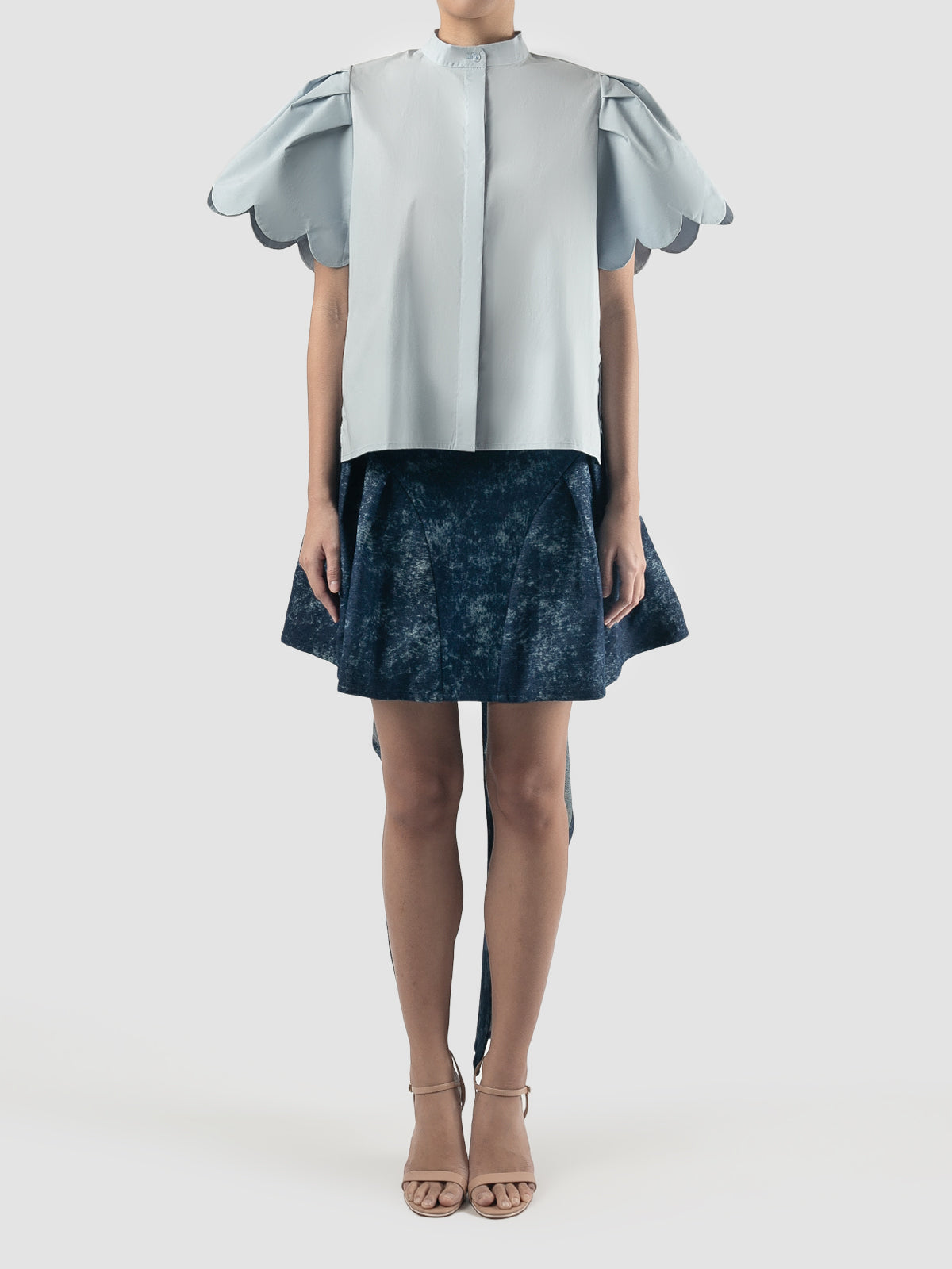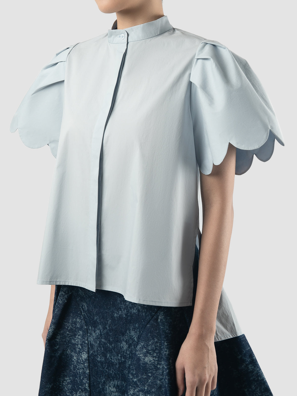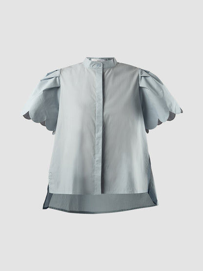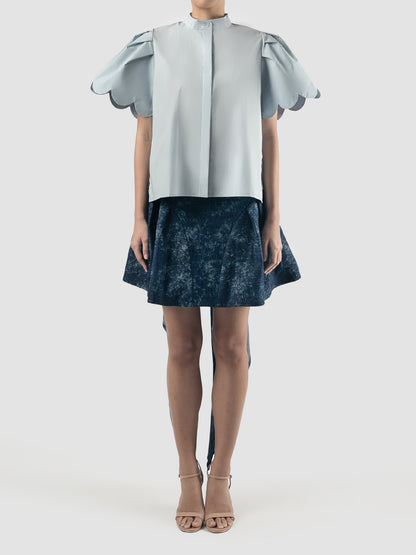 Sky blue Biennis shirt with scalloped short sleeves