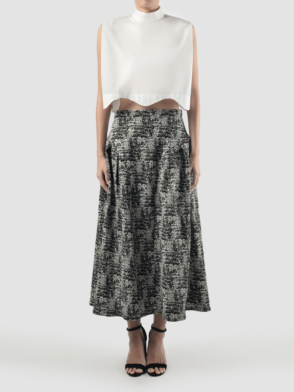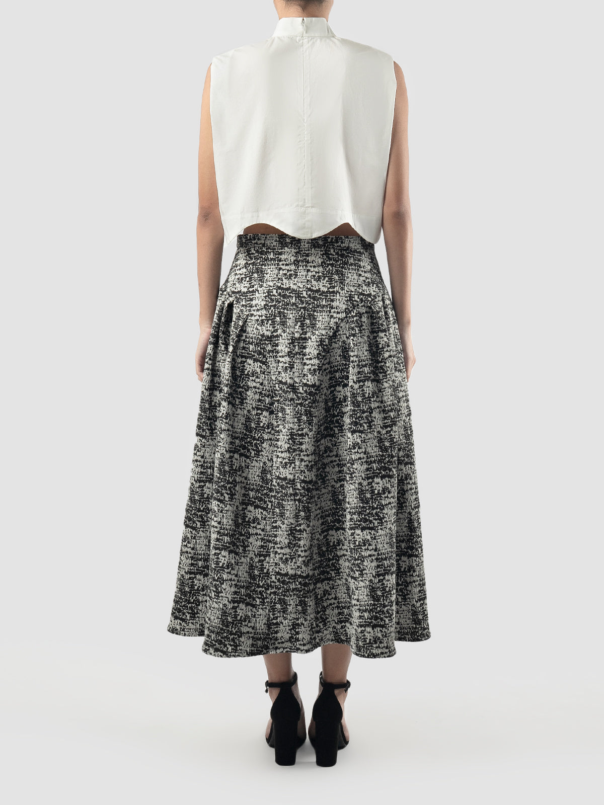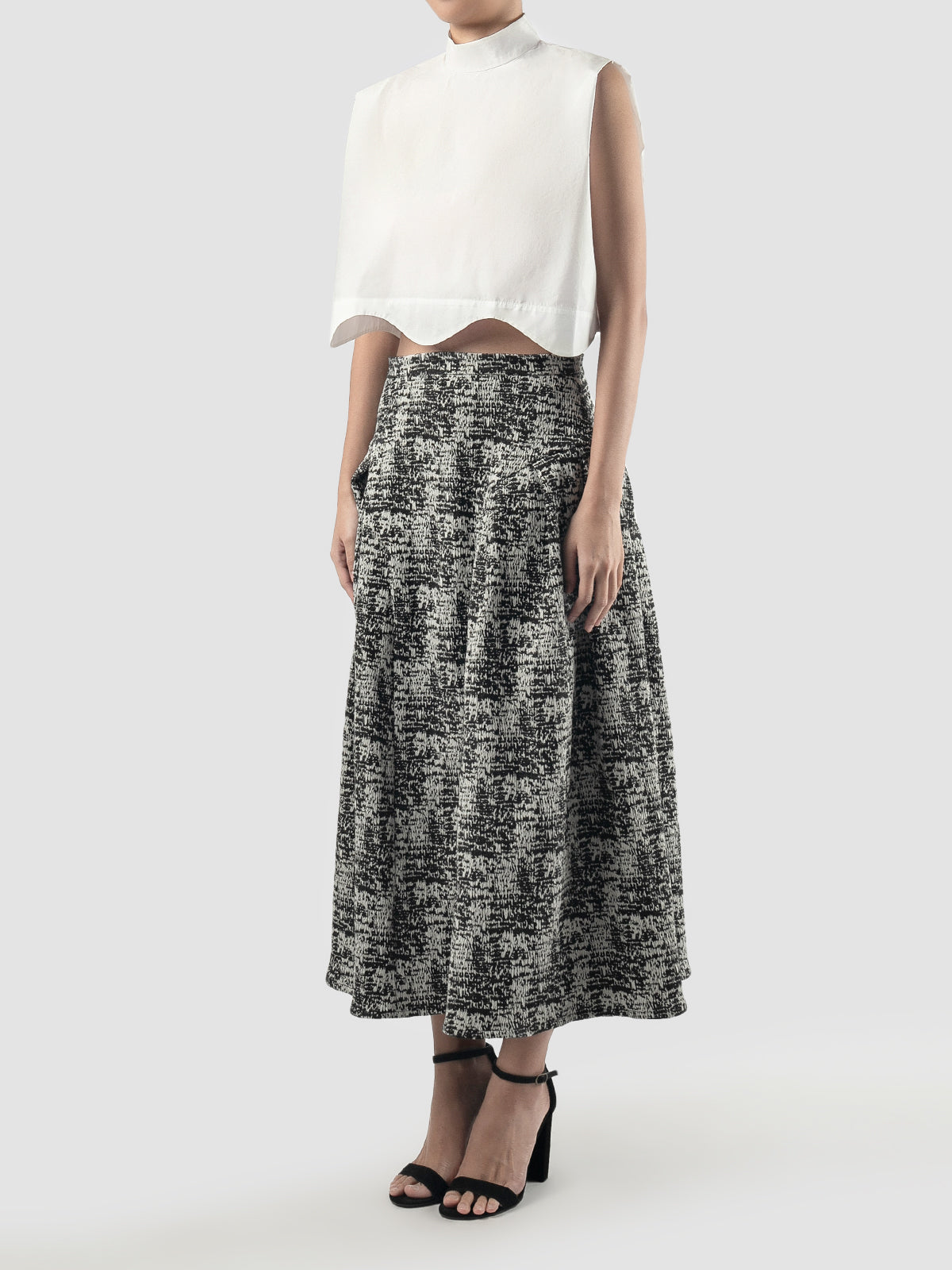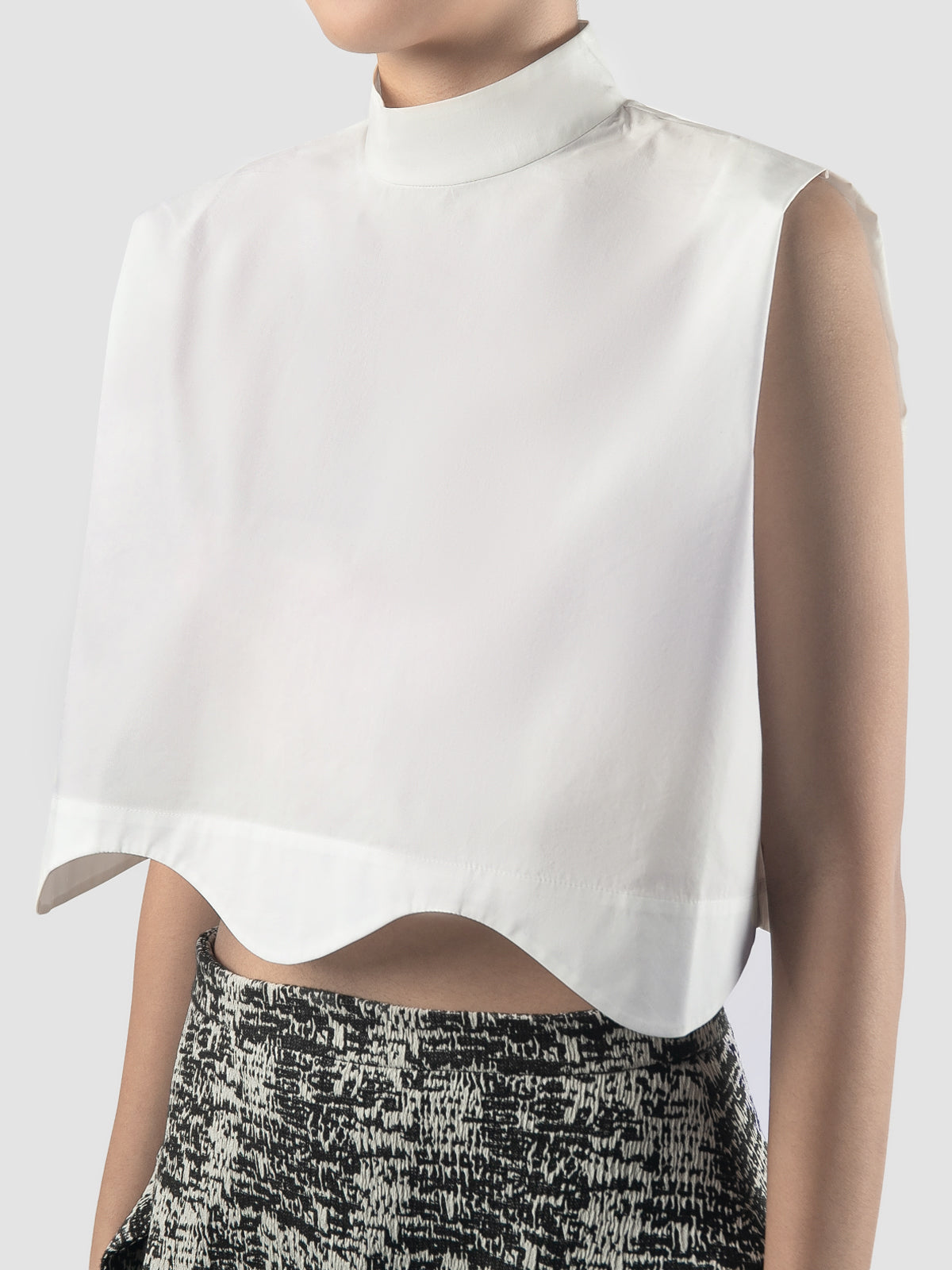 With a cropped length, the top's rounded collar and sleeveless design work together to add a modern feel.