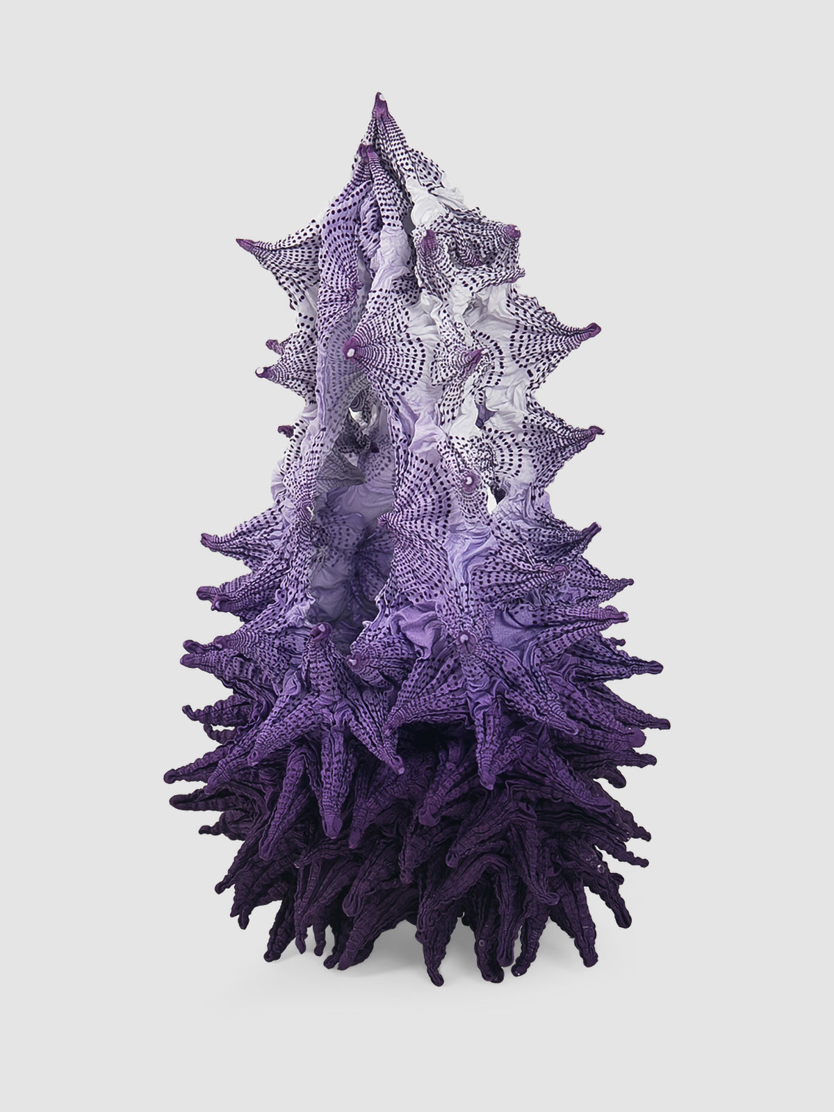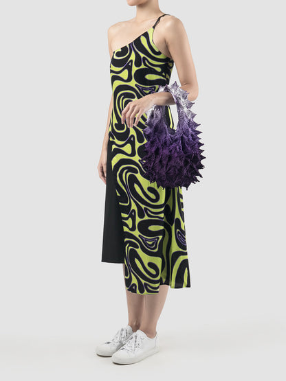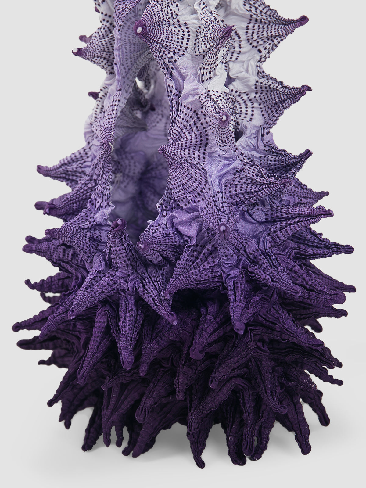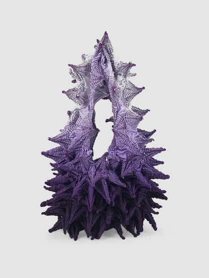 Inspired by the distinctive features of the puffer fish, this unique bag boasts intricate spikey fabric manipulation.