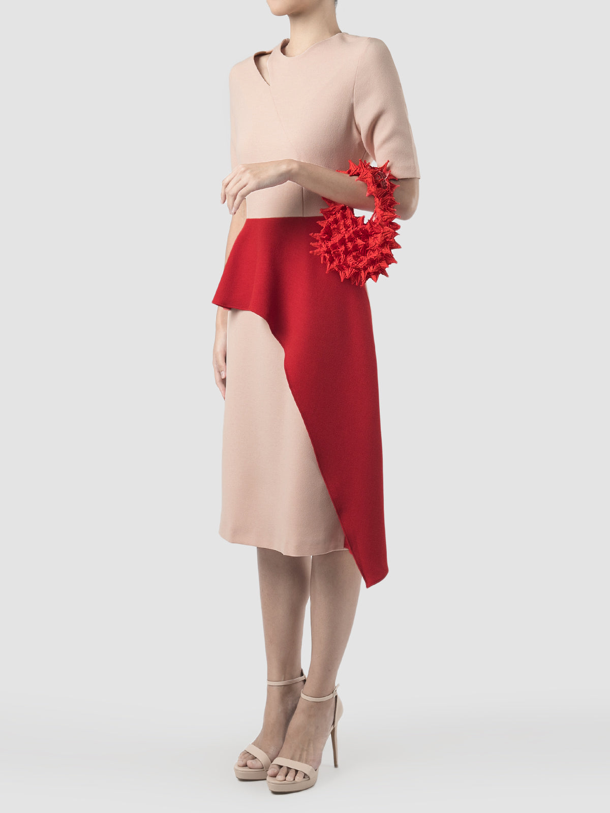 Rueverse takes up the challenge of redesigning wastes and gives them a longer life to reduce their scattering in the environment. Born out of recycled PET plastic bottle-turned-polyester fabric, this vibrant holly red bucket bag is one of its pieces of evidence.