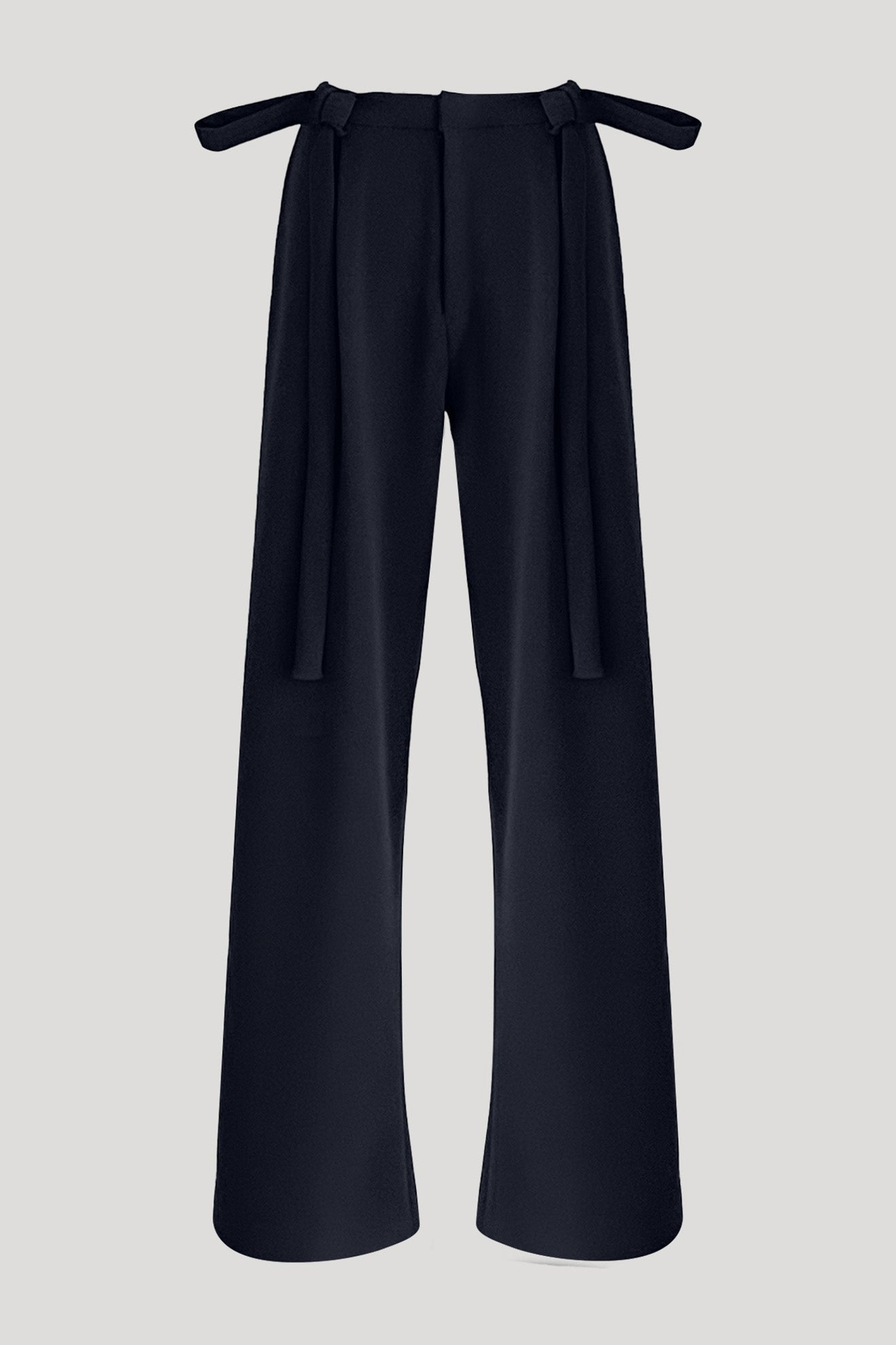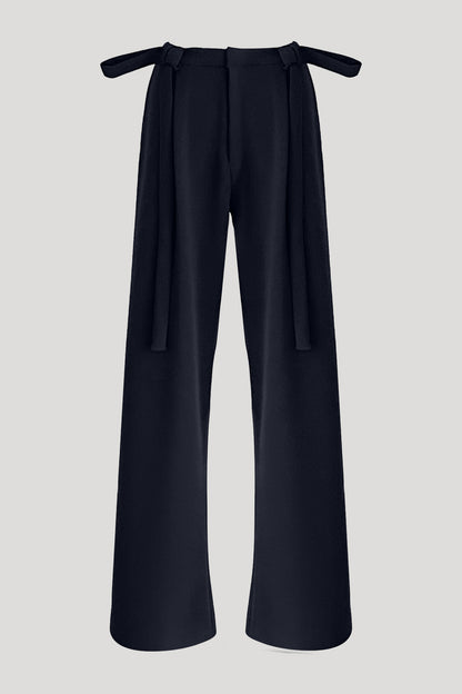 The bottom features a classic bootcut design and a pair of adjustable sash at the waist that add a touch of classic sophistication to your look.