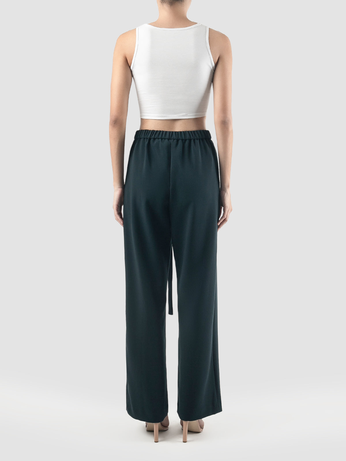 These stylish and versatile pants come in a dark teal color that is both elegant and unique.