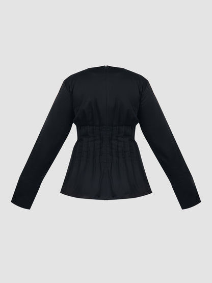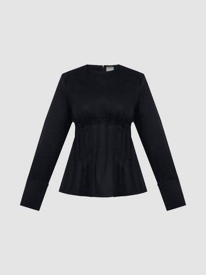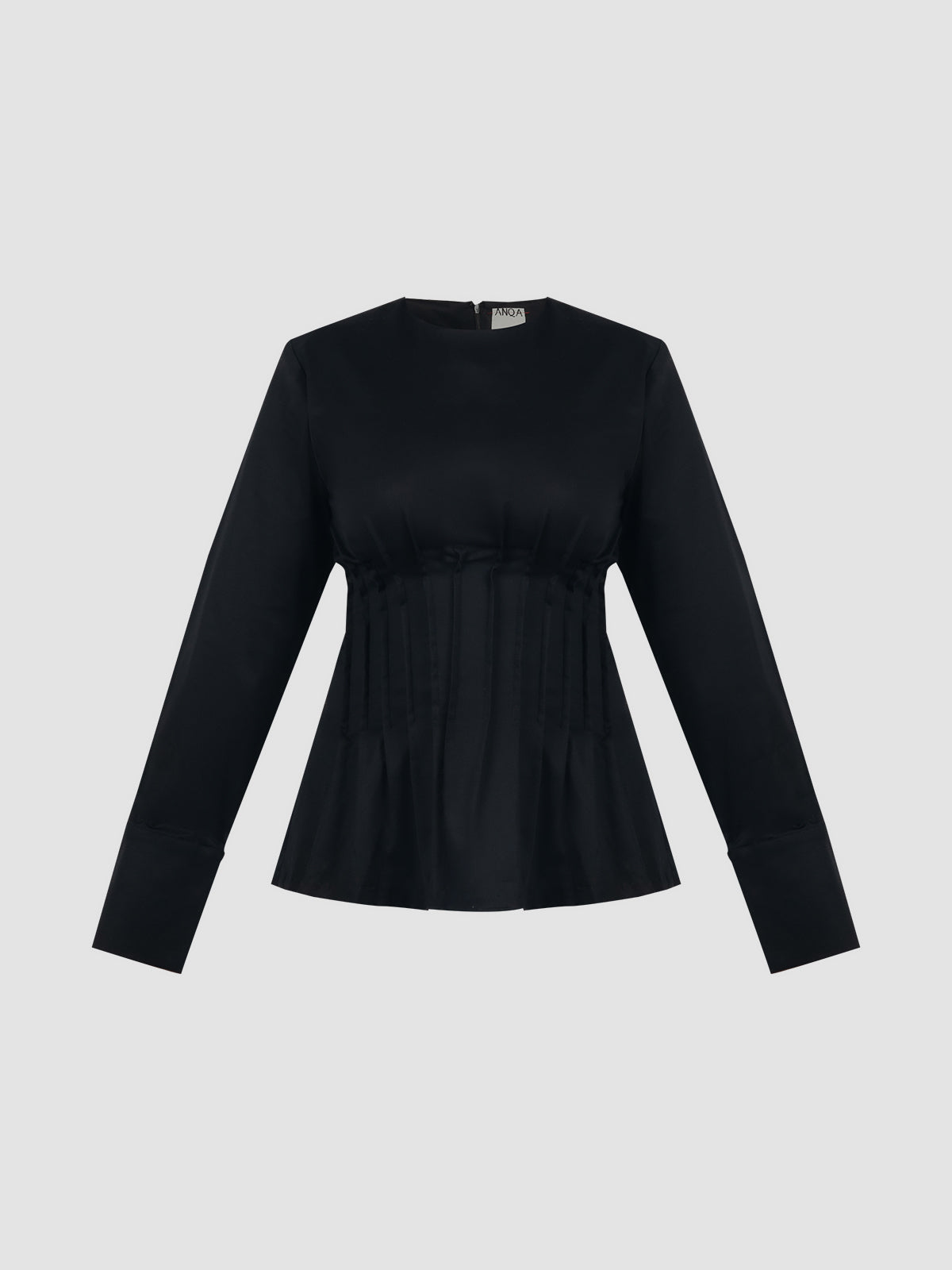 A long-sleeved top constructed with multiple pintuck details to accentuate the shape of the body. A chic, flattering fit for any body type. Perfect for layering under jackets or wearing alone.