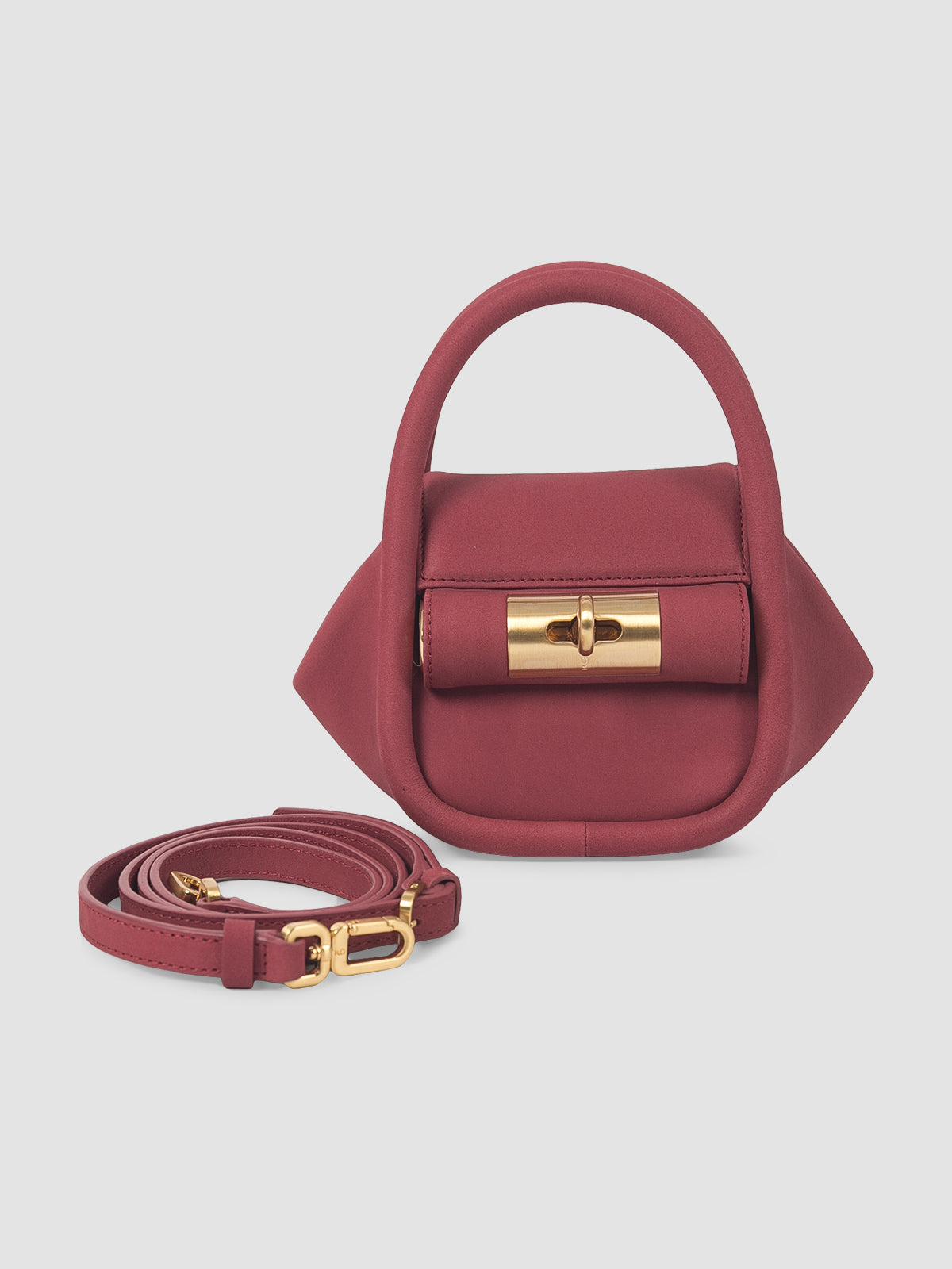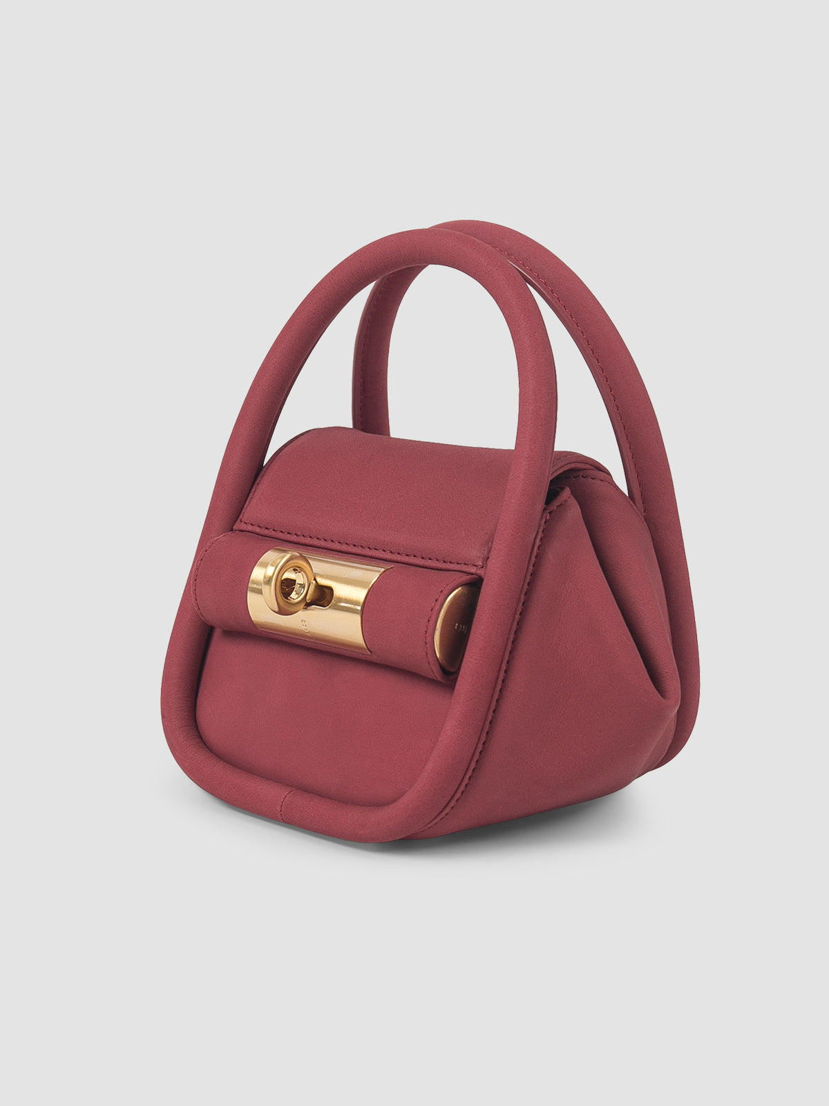 Versatile and compact, the mini handbag is an elegantly shaped, uniquely crafted accessory from full-grain natural-type cow leather and recycled polyester lining with single-space card storage.