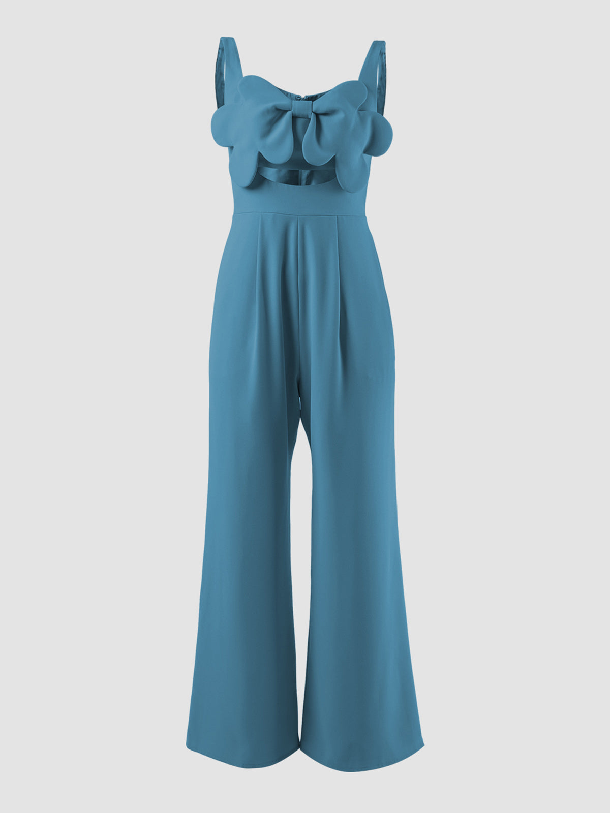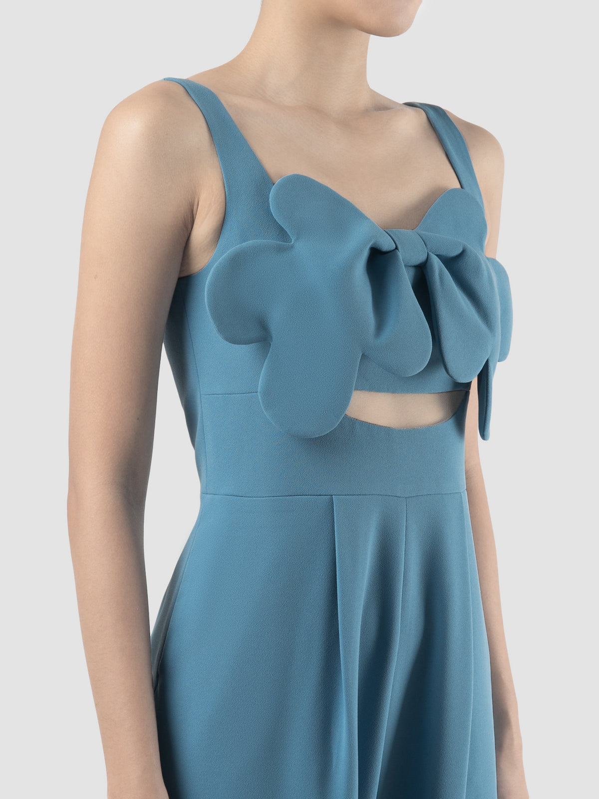Octave light royal blue jumpsuit with scalloped bow and cutout
