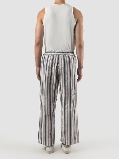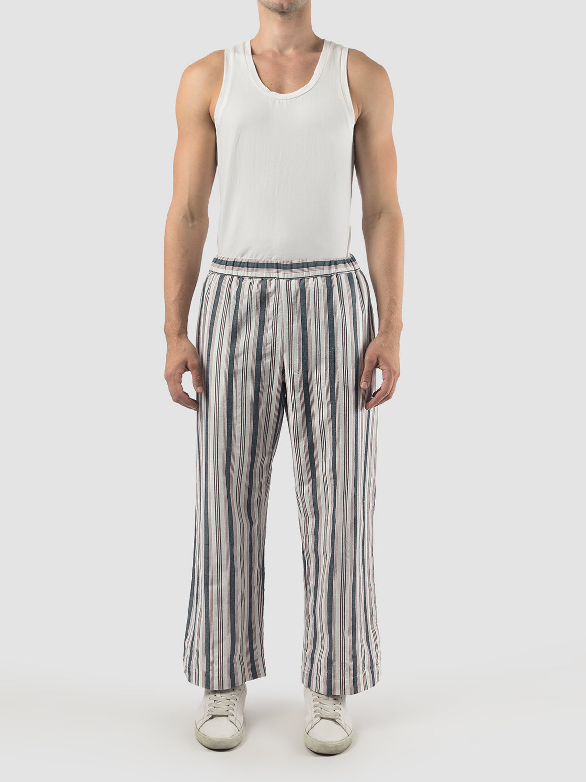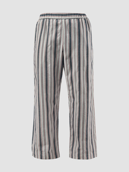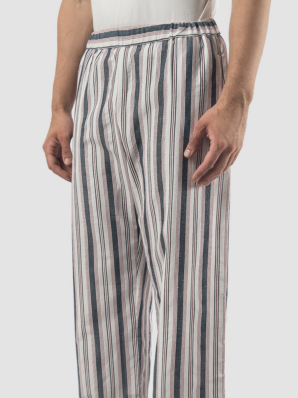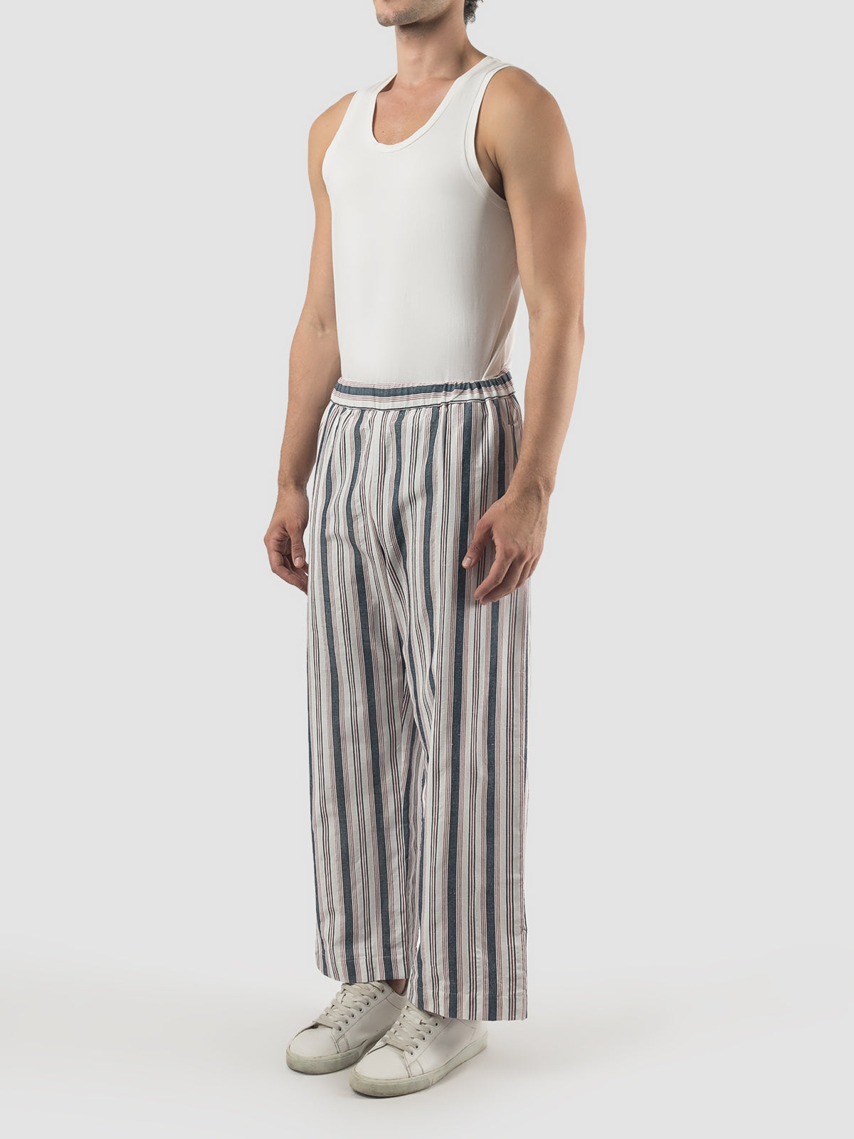 These wide-legged palazzo pants feature a sophisticated lurik pattern and are designed for comfort with their elastic waistband.
