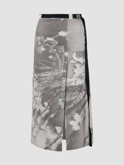 Shadow Floral Buckle Pencil Skirt In Grey Print